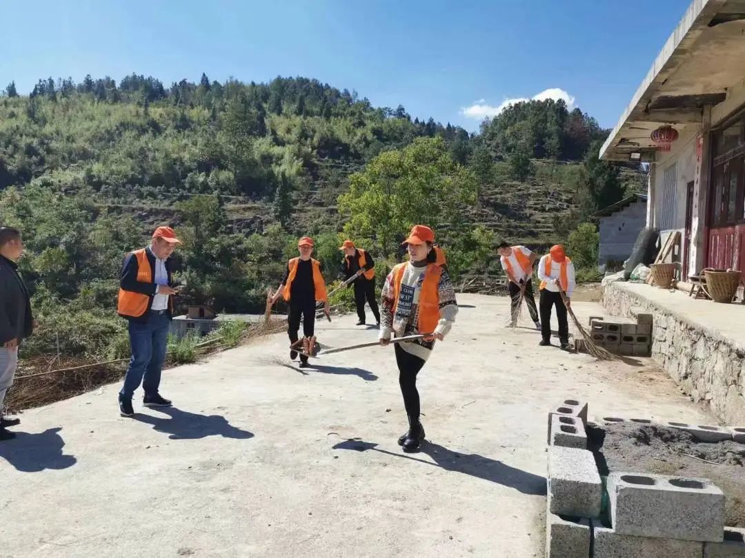 活動中,在該村油茶基地里,一群身穿橙色馬甲的黨員志愿者們熱情高漲、干勁十足、分工協作,經過一個多小時的勞動,一大片油茶地里的雜草就被清除干凈。之后,一組志愿者來到行動不便的脫貧監測戶家中,幫忙他們打掃房前屋后。